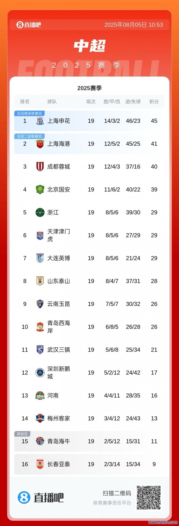 国安近三轮中超不胜,目前11胜6平2负积39分,排名职业联赛 第四。