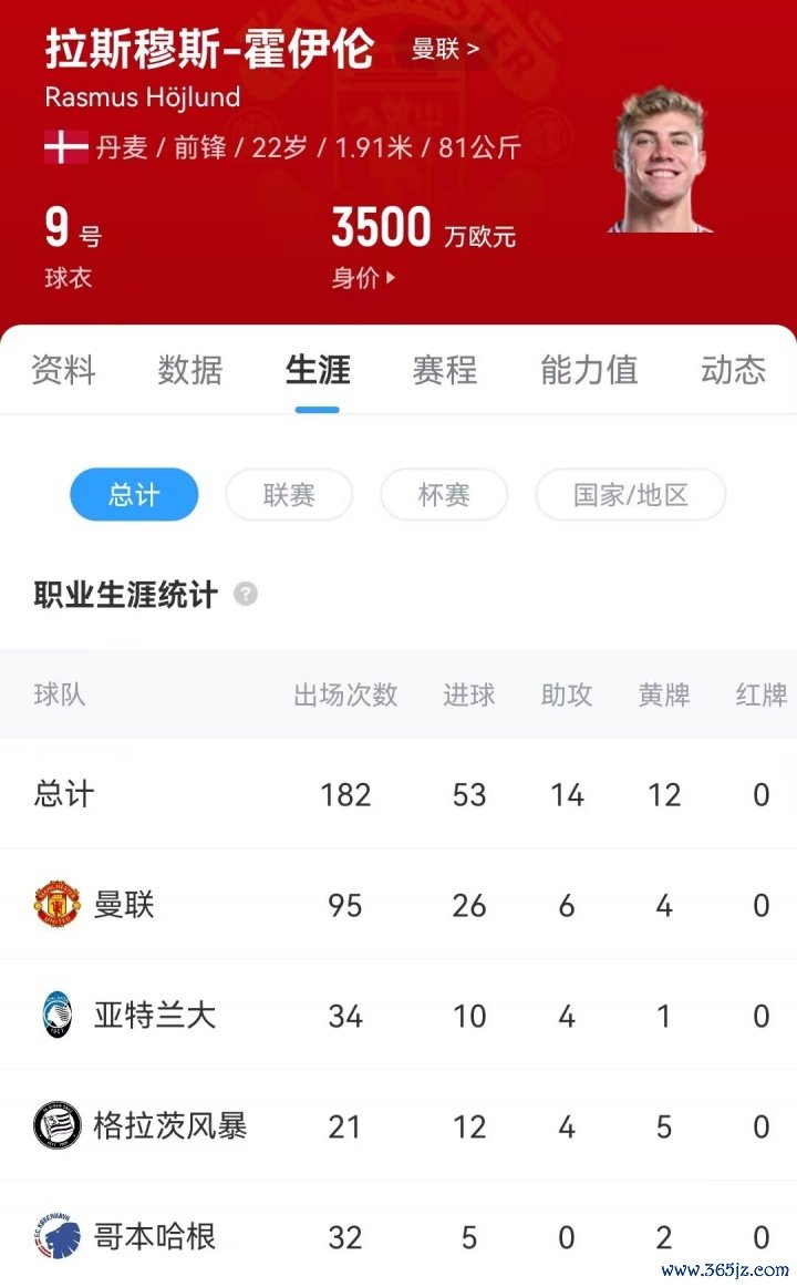 霍伊伦2023年夏窗以7780万欧元转会费从亚特兰大加盟曼联。为曼联效力的两年间,他为曼联出场95次,贡献26球6助功 。球员目前的身价为3500万欧元。