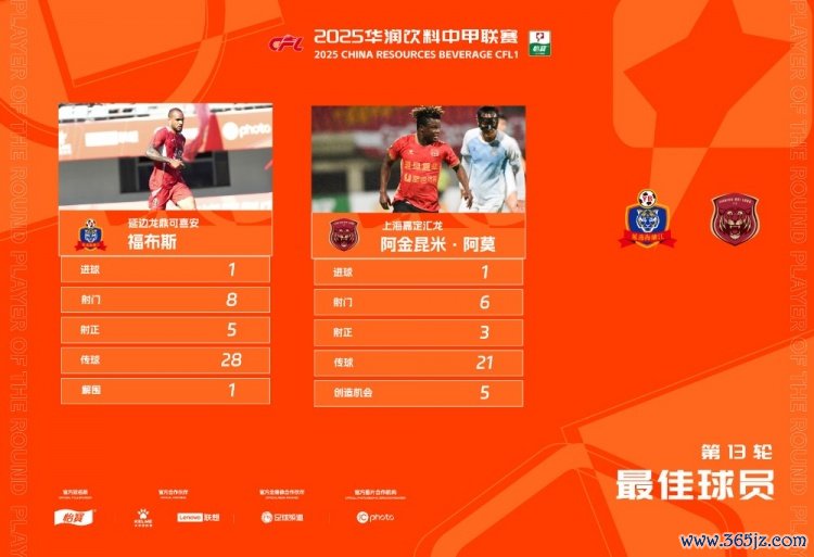 9月11日讯 中甲第13轮最佳球员奖项公布,延边龙鼎外援福布斯和上海嘉定汇龙外援阿金昆米-阿莫共同当选。
