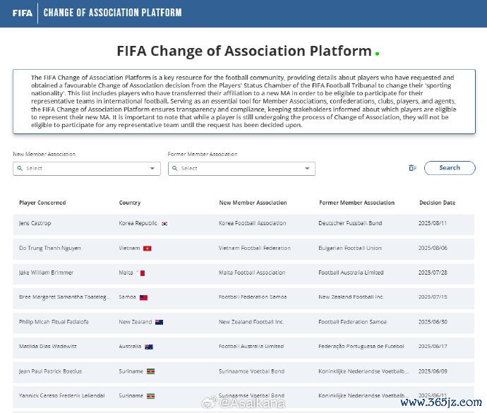韩国完成了卡斯特罗普(Jens Castrop)的转换代表队手续,他今后将代表韩国国家队出战。