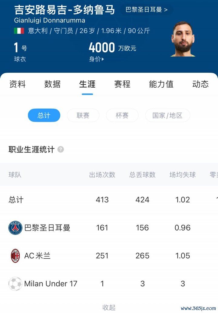 多纳鲁马目前26岁,出自米兰青训,2021年自由身加盟巴黎。多纳鲁马效力巴黎四年共出战161场,零封56场,上赛季发挥出色帮助球队首夺欧冠,此外还帮助巴黎拿到4个法甲第一名 、2个法国杯和3个法国超级杯。