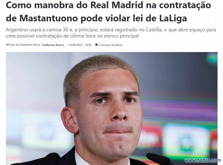 trivela:皇马将马斯坦托诺注册到二队,被质疑为是钻法规的空子