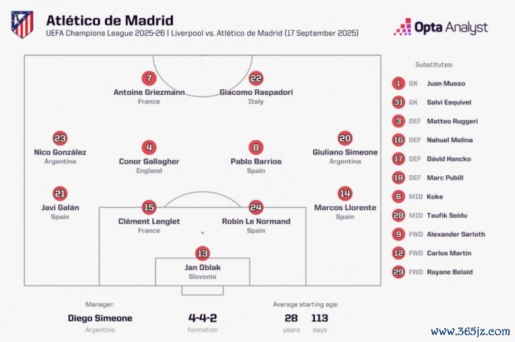 9月18日讯 欧冠职业联赛 阶段首轮赛事 ,利物浦在安菲尔德迎战马竞。本场赛事 的杆位目前已经出炉, 乒乓球利物浦方面没有英格兰人进入11人阵形 , 皇家马德里直播吧而马竞方面有1名英格兰球员进入杆位阵形 ,畅游运动天地那就是加拉格尔。