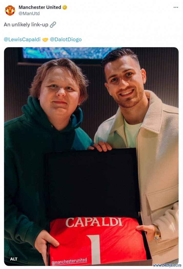 苏格兰知名歌手卡帕尔迪在曼彻斯特开演唱会中超足协杯赛程,畅游运动天地NBA直播他获赠曼联运动活动 服 , 乒乓球曼联官方社媒晒出达洛特与卡帕尔迪的合照。