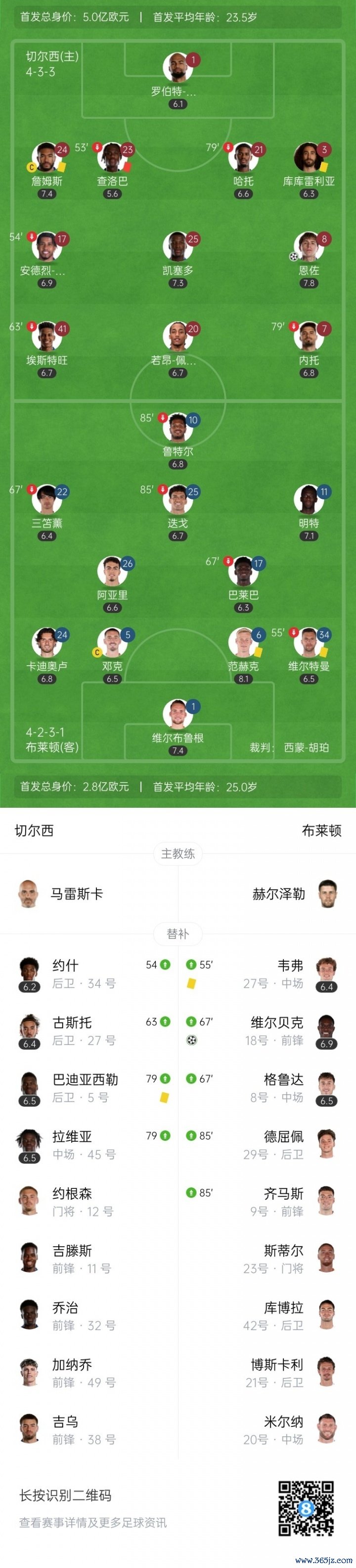 英超第6轮:切尔西1-3布莱顿。1-0领跑 时,畅游运动天地NBA直播查洛巴直红,马雷斯卡接连换下埃斯特旺和内托,场上5后场球员+3中场球员+1前场球员,随后被布莱顿连入3球反转 。切尔西没守住,1-3告负。
