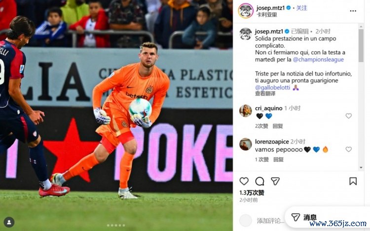 9月28日讯 本轮意甲赛事 ,国米在客场应战 以2-0的比分战胜卡利亚里。本场赛事 ,蓝黑军团守门员何塞普-马丁内斯杆位登场。
