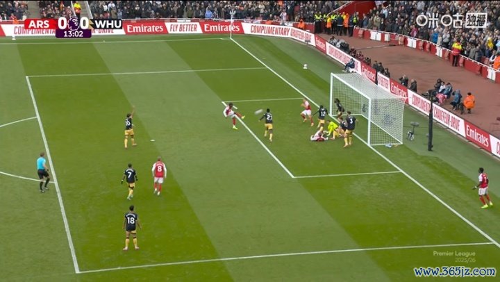 10月04日讯 英超第7轮,阿森纳vs西汉姆联。赛事 第13分钟,